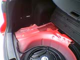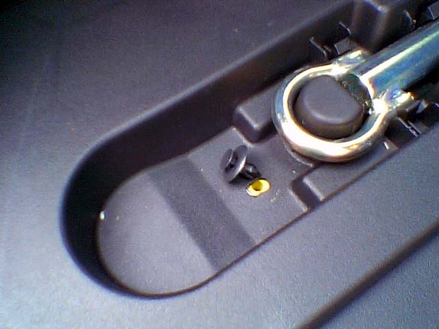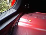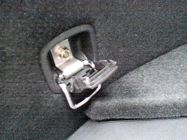 ショートケーブルは内張りの下に入り込んでいるので左のネットフックを取り外して内張りが浮くようにします。 |