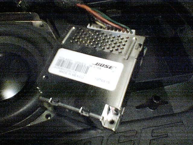 このショートケーブルを改造して本来のBOSEアンプの出力の替わりにDSPからの信号を割り込ませます。 |