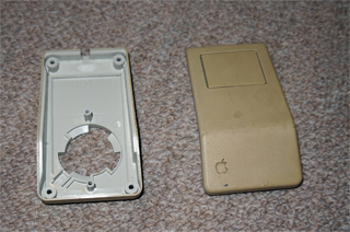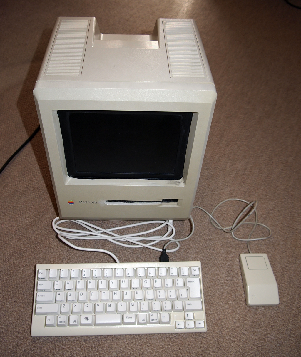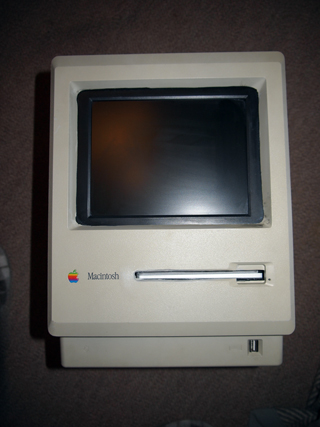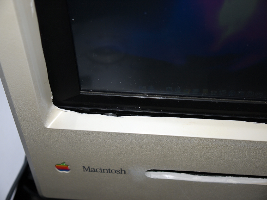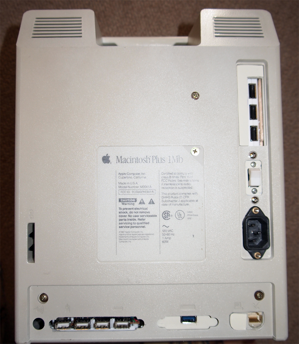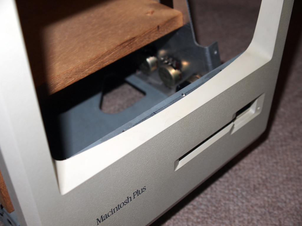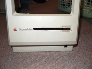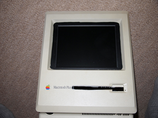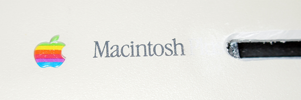 ロゴ 上の写真で気づかれたかもしれませんが、Macintosh Plus のPlus の部分を消して初代っぽく見せています。ラッカーシンナーでこすったら簡単に消えてしまいました。当時はただのラッカー塗装だったようです。