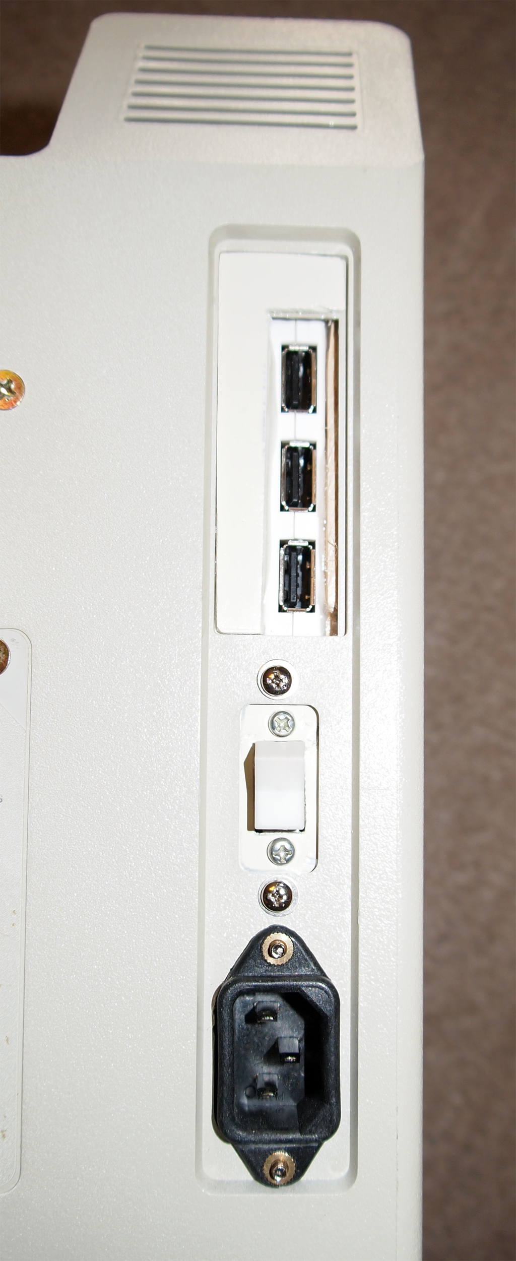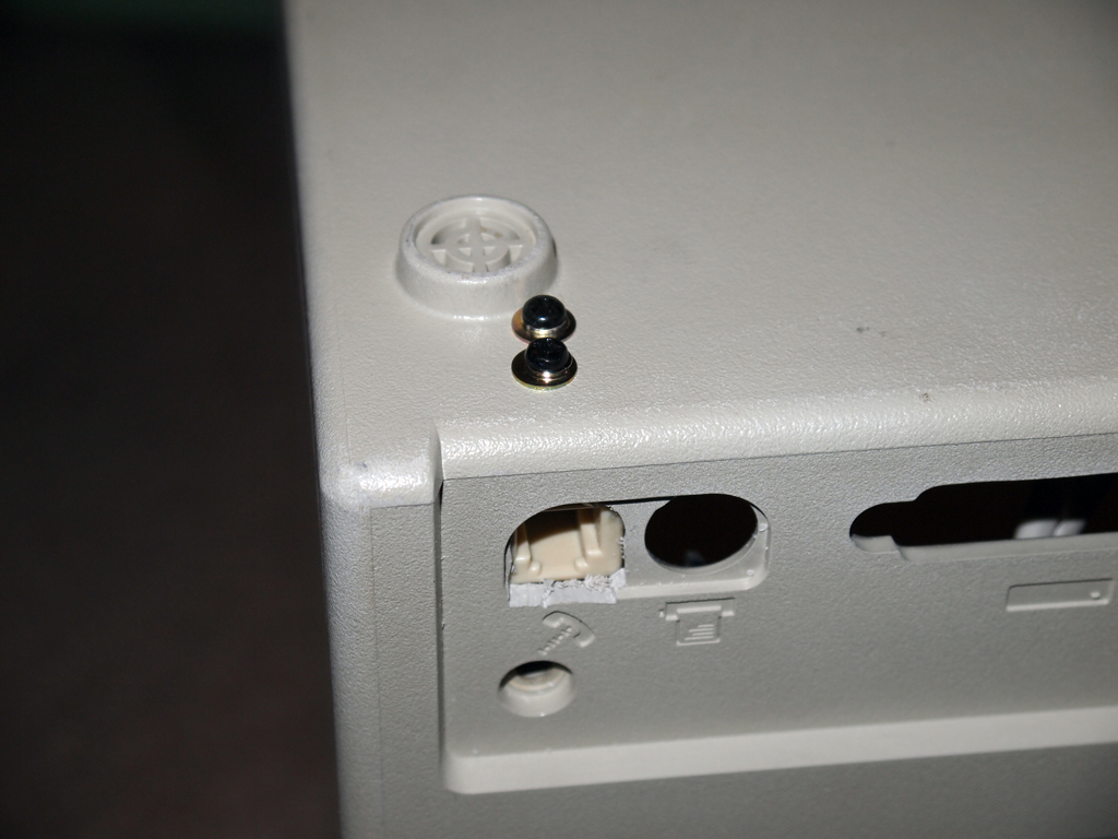筐体の基本構成 長い間倉庫に放り込んでいたのでかなりホコリをかぶっていました。側面はApple 特有の色やけが一部起きていて黄色に変色していますが、フロントパネルはきれいなので、そのまま使用しました。ホコリが気になったのできれいに洗いました。