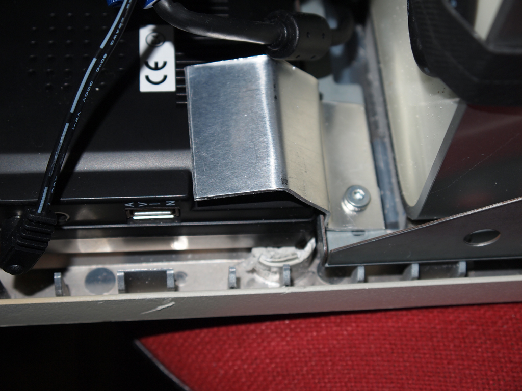 ディスプレイのDB15 コネクタはライトアングルか短いものを探したのですが見つからずケーブルを強く曲げないと筐体にぶつかってしまいます。
