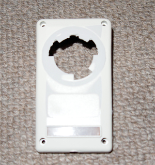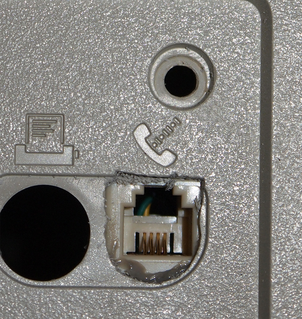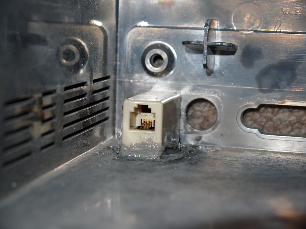 元のDIN コネクタ用の丸穴では小さいので上部を角穴に拡げてLAN ケーブルが取り付けられるようにしました。