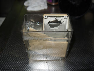 コネクタ部分はケーブルが引っ張られたりして思わぬ力がかかることがあるためエポキシだけでは不安なのでコネクタに穴を開け、セルフタップビス二本で強化しています。
