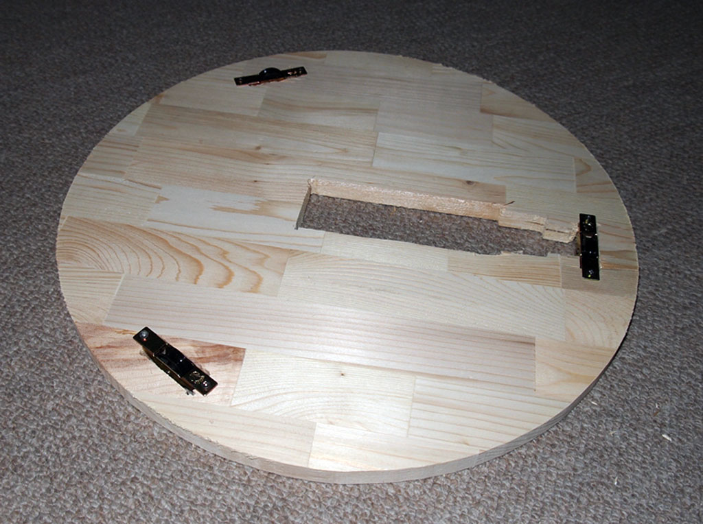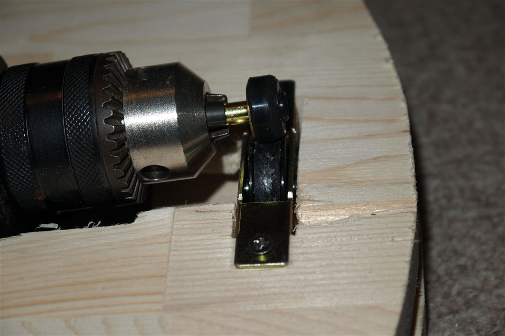 脚がこの板の裏に取り付けられるので、その固定も考えると非常に苦しい配置になります。足の裏からタイヤが出っ張る量は少なくしたいのでこの板を足の裏から浮かせて固定します。構造的に複雑になるので全体の重量を支える脚の取り付け部分の強度を十分考慮しなければなりません。