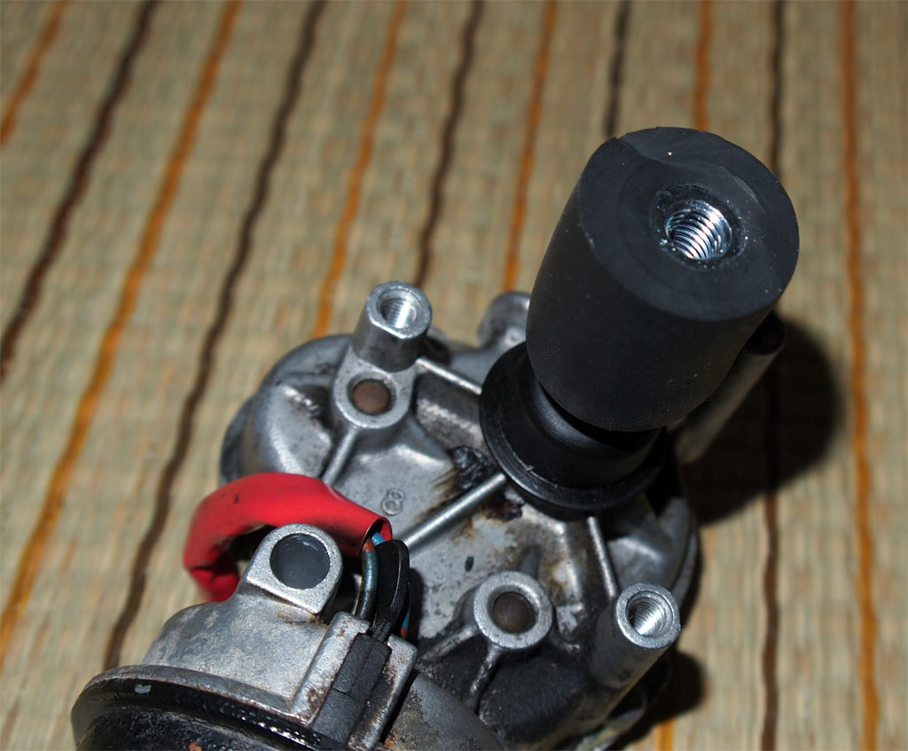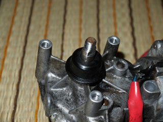 圧入されたゴム棒です。更にワッシャとボルトで蓋をします。 |