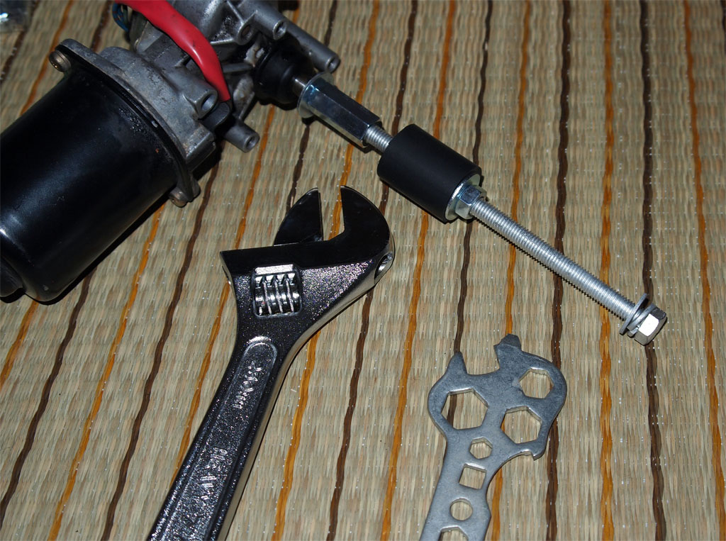 使用したワイパーモーターです、ワイパー用のアームは取りはずします。 |