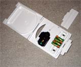 蓋はなくCDは表からパチンとはめ込むだけです。下の紐を引くと再生が始まります。
